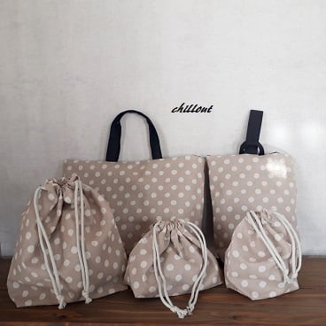 【入園・入学】入園バッグ5点セット:ドット:ベージュ【0472】