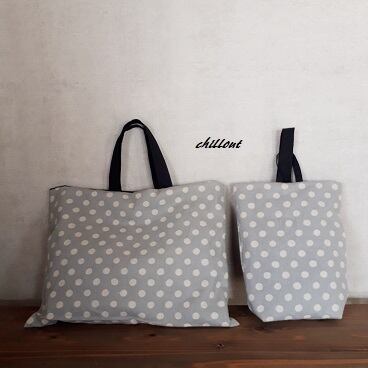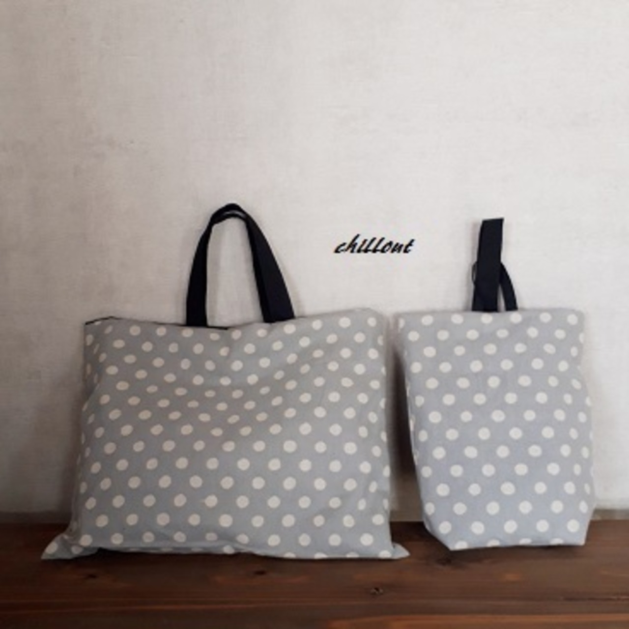 【入園・入学】入園バッグ2点セット:ドット:ブルーグレー【0482】