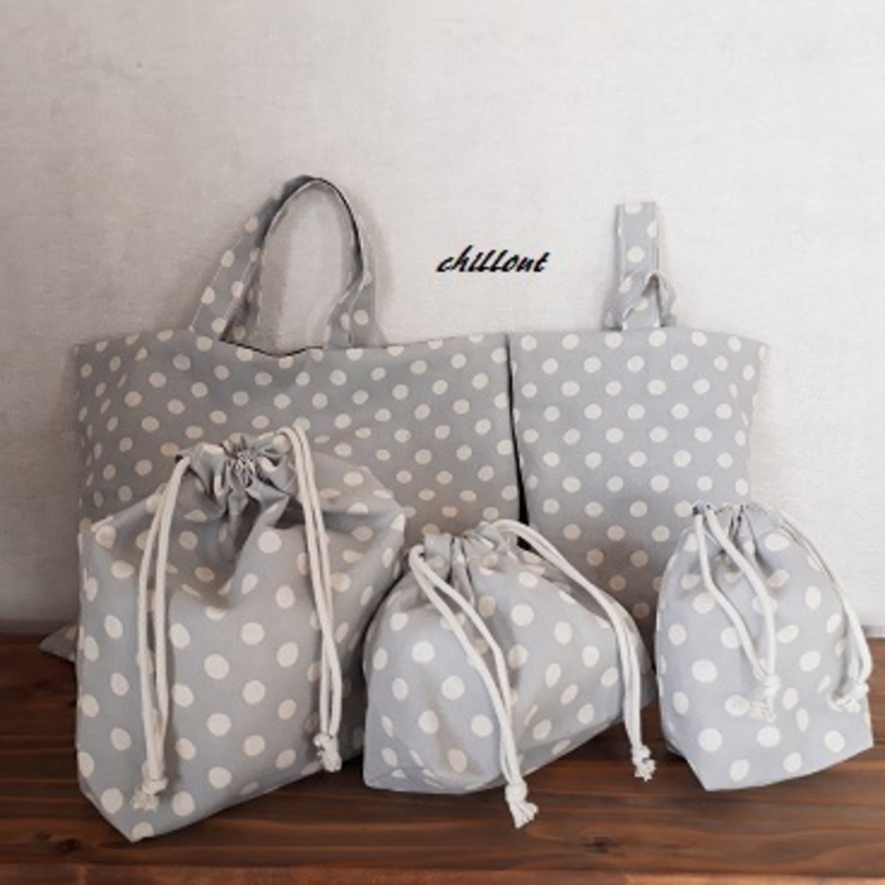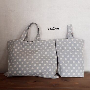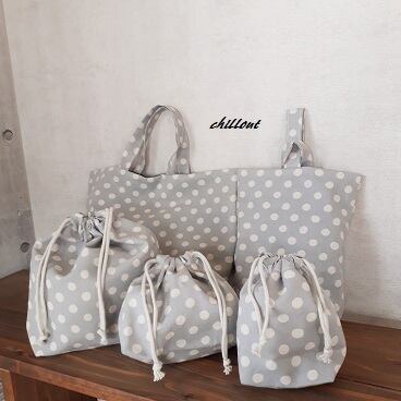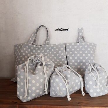 【入園・入学】入園バッグ5点セット:ドット:ブルーグレー【0477】