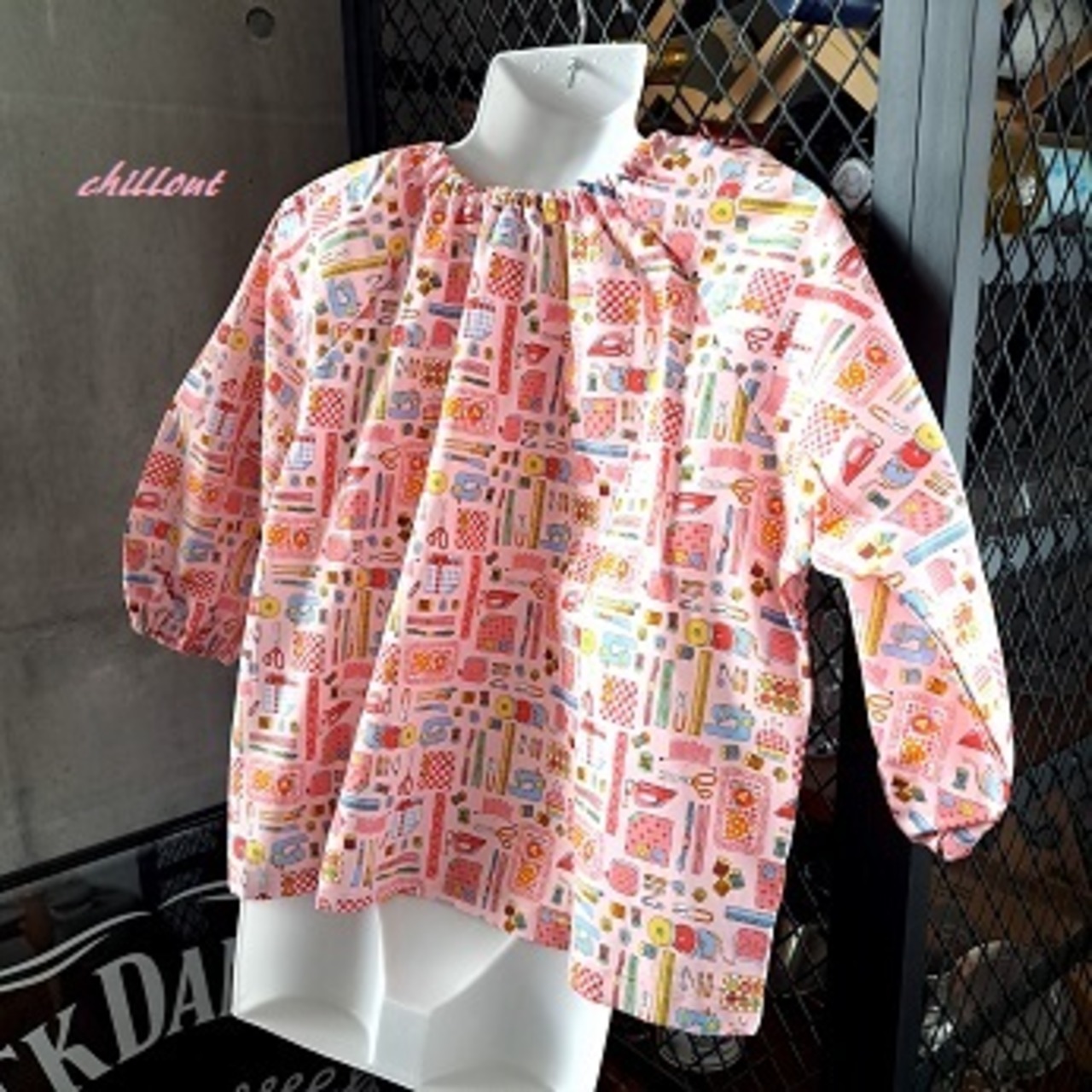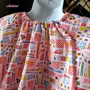 とってもかわいらしいピンクに裁縫道具がたくさん書かれています。