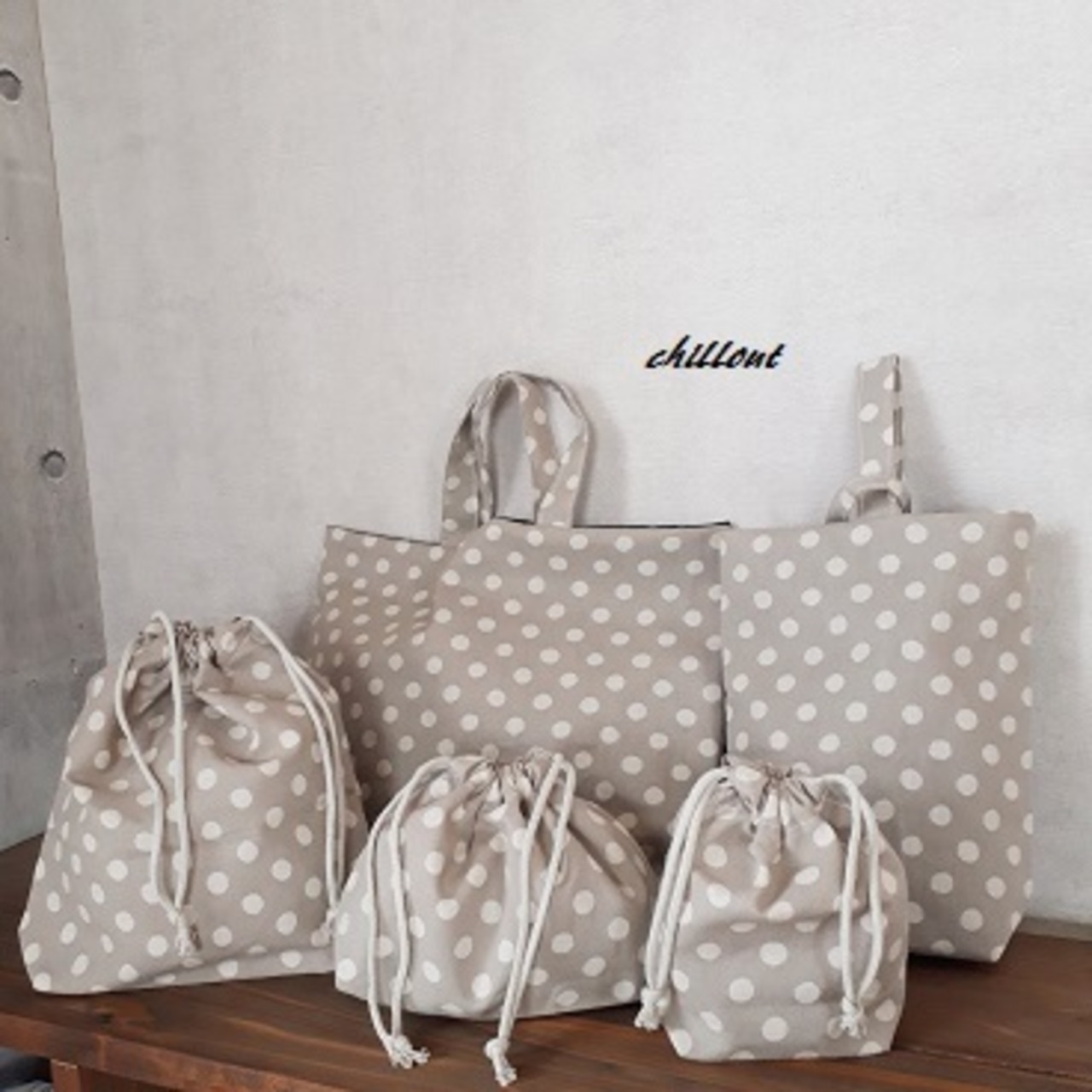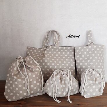 【入園・入学】入園バッグ5点セット:ドット:グレージュ【0483】