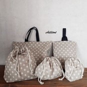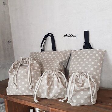 【入園・入学】入園バッグ5点セット:ドット:グレージュ【0485】