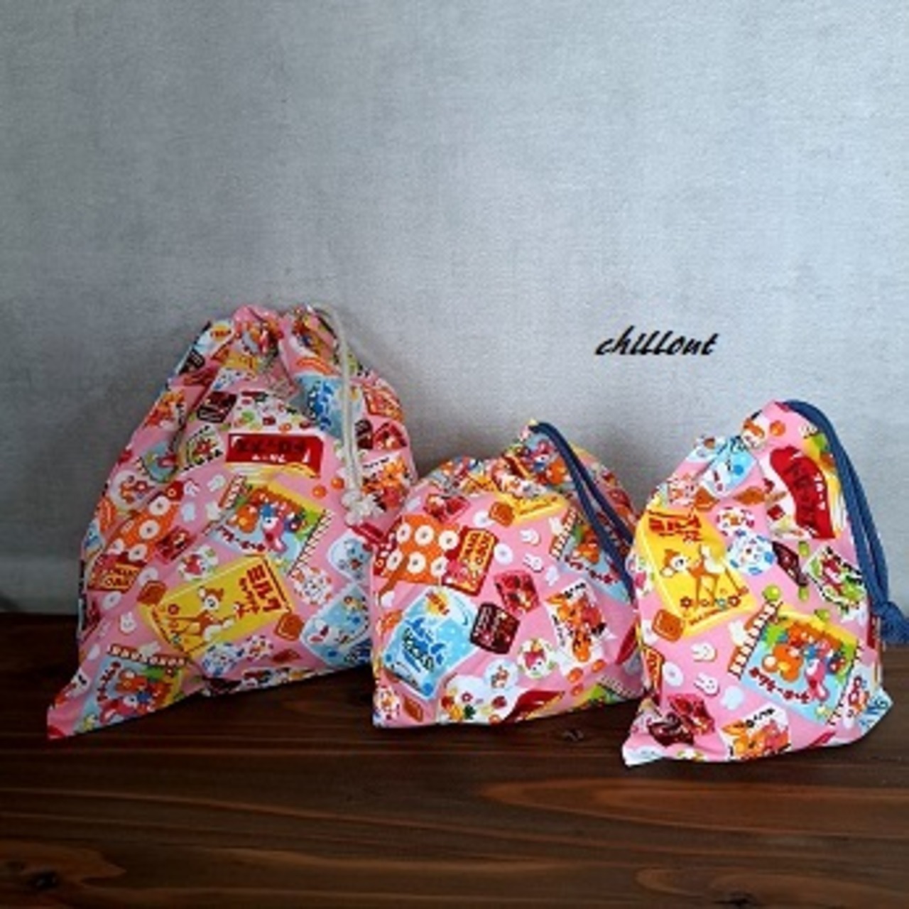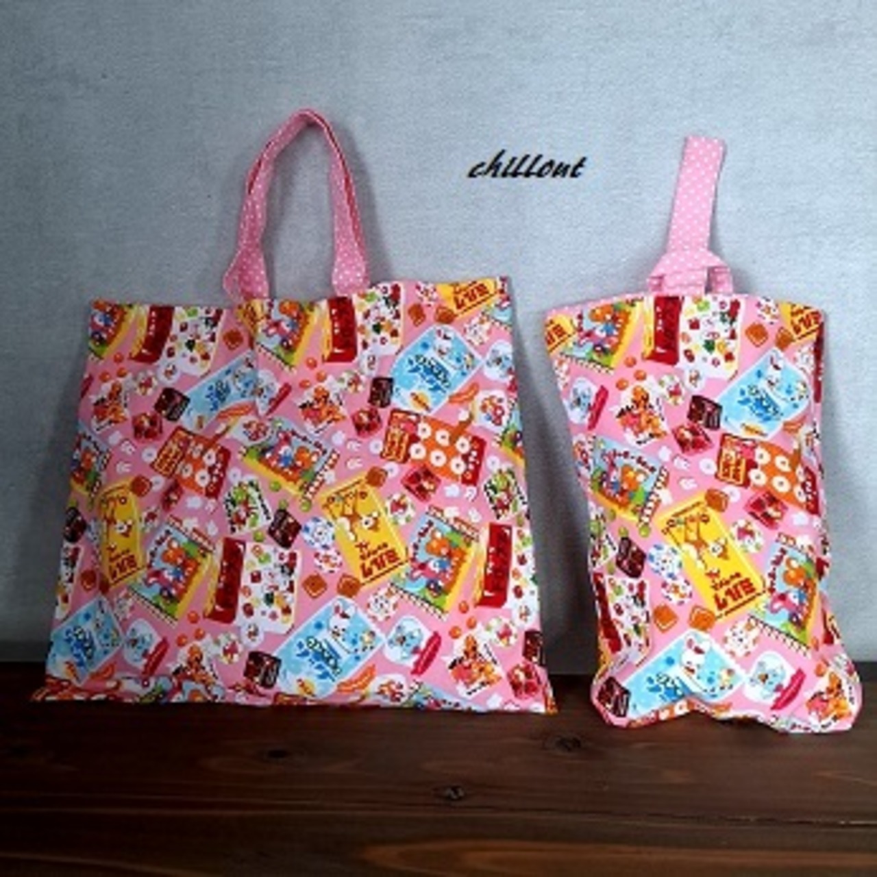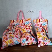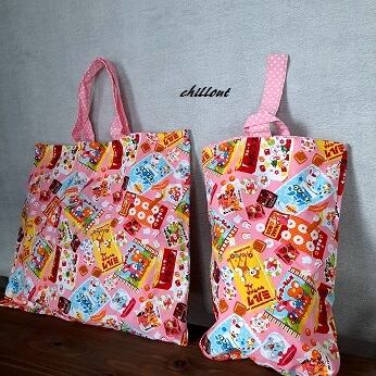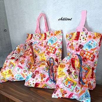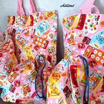 可愛らしいお菓子の柄の入園バッグの5点セットです!