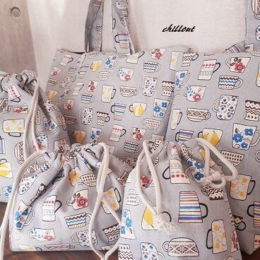 北欧デザインのティーカップ柄入園5点セットが出来上がりました。