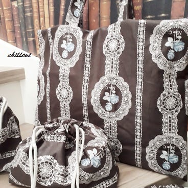 フレンチなローズ柄の入園バッグ5点セットが出来上がりました!