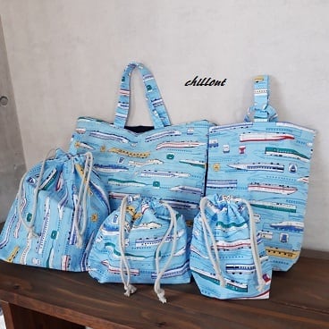 新幹線の入園バッグ5点セットが出来上がりました!