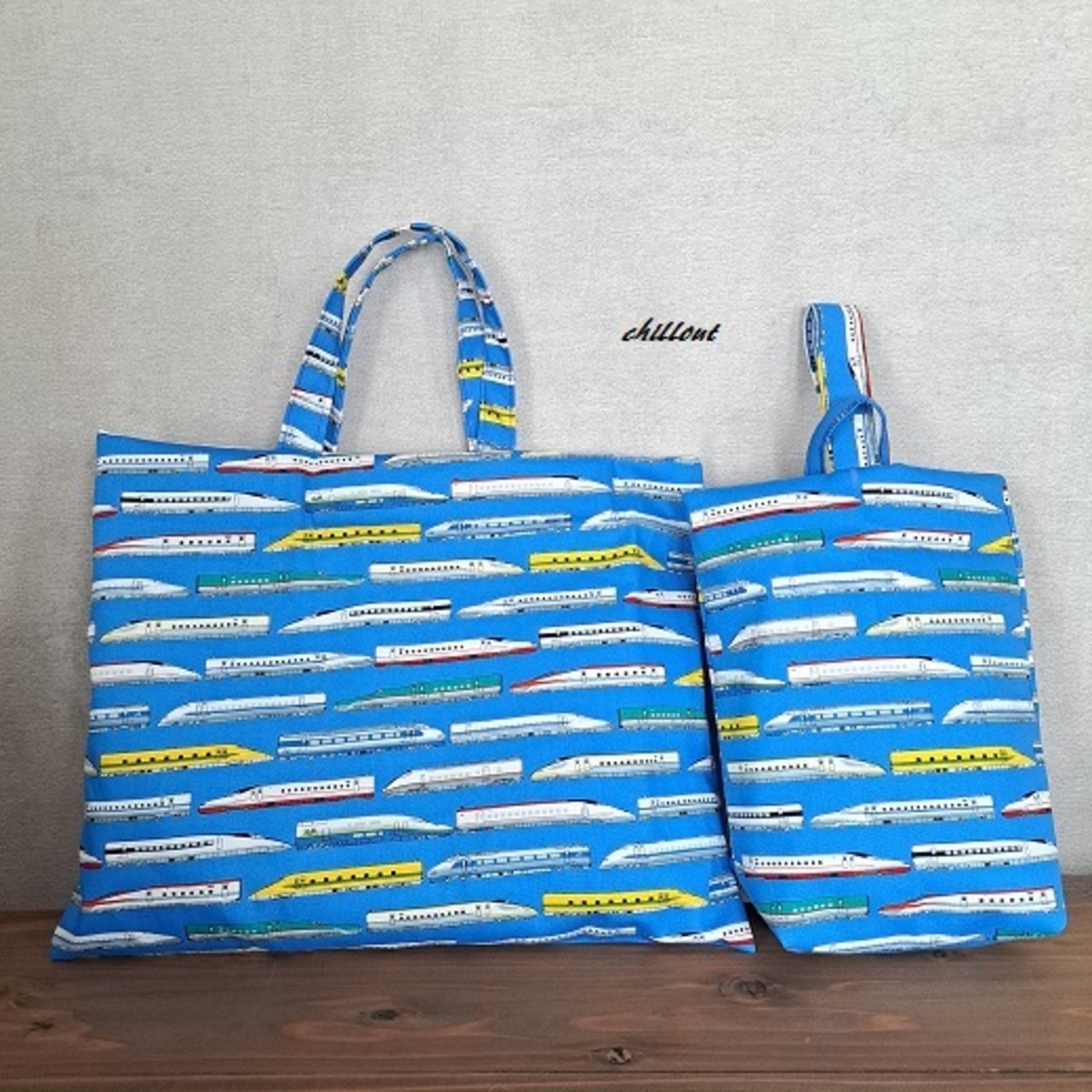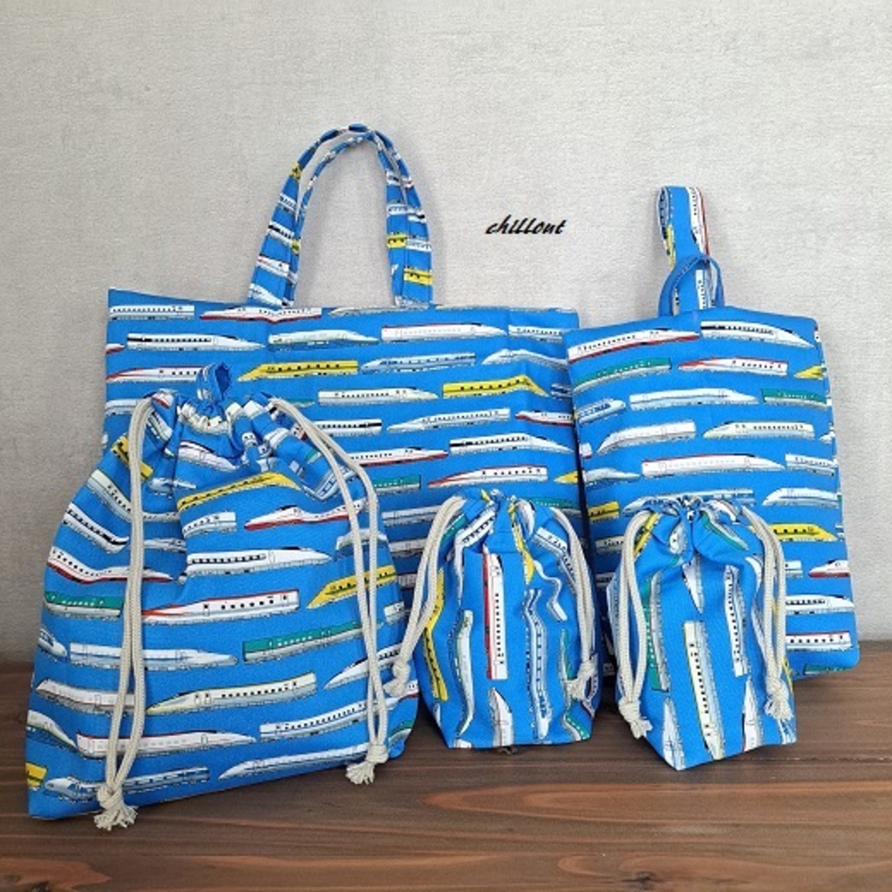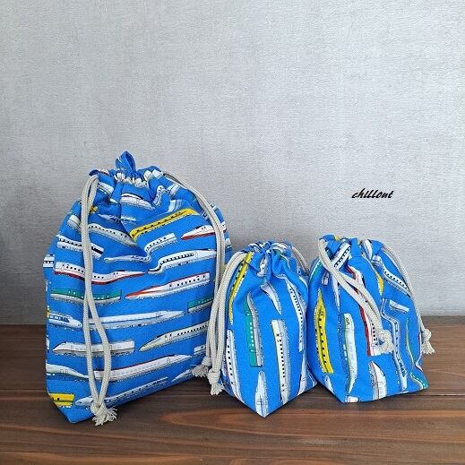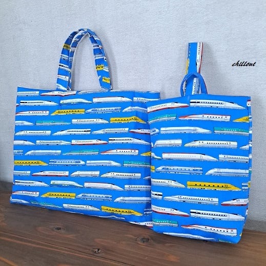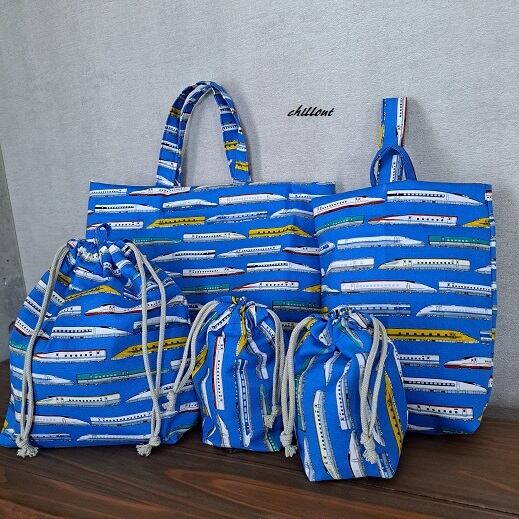 新幹線柄の入園バッグ5点セットが出来上がりました!