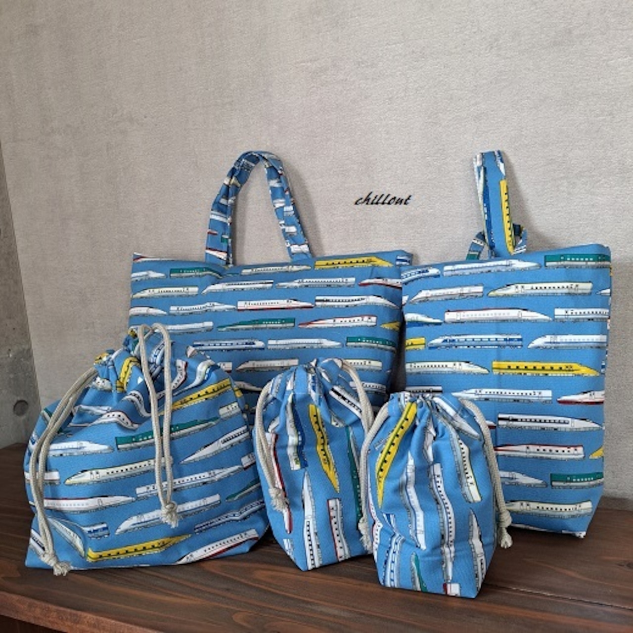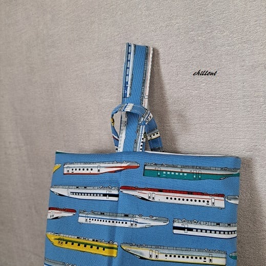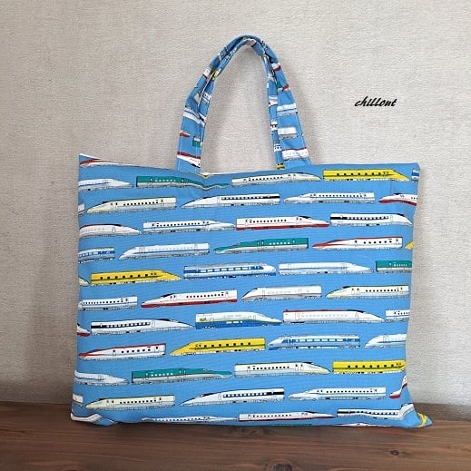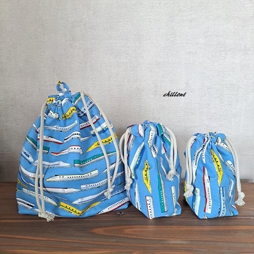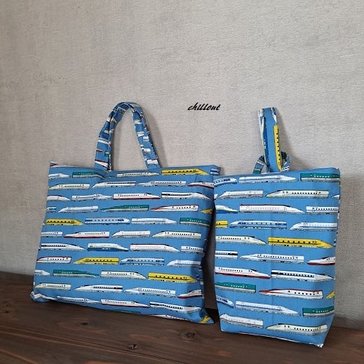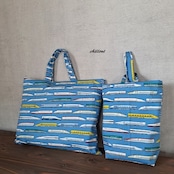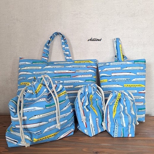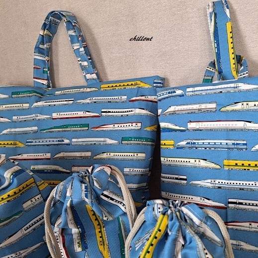 新幹線柄の入園バッグ5点セットが出来上がりました!