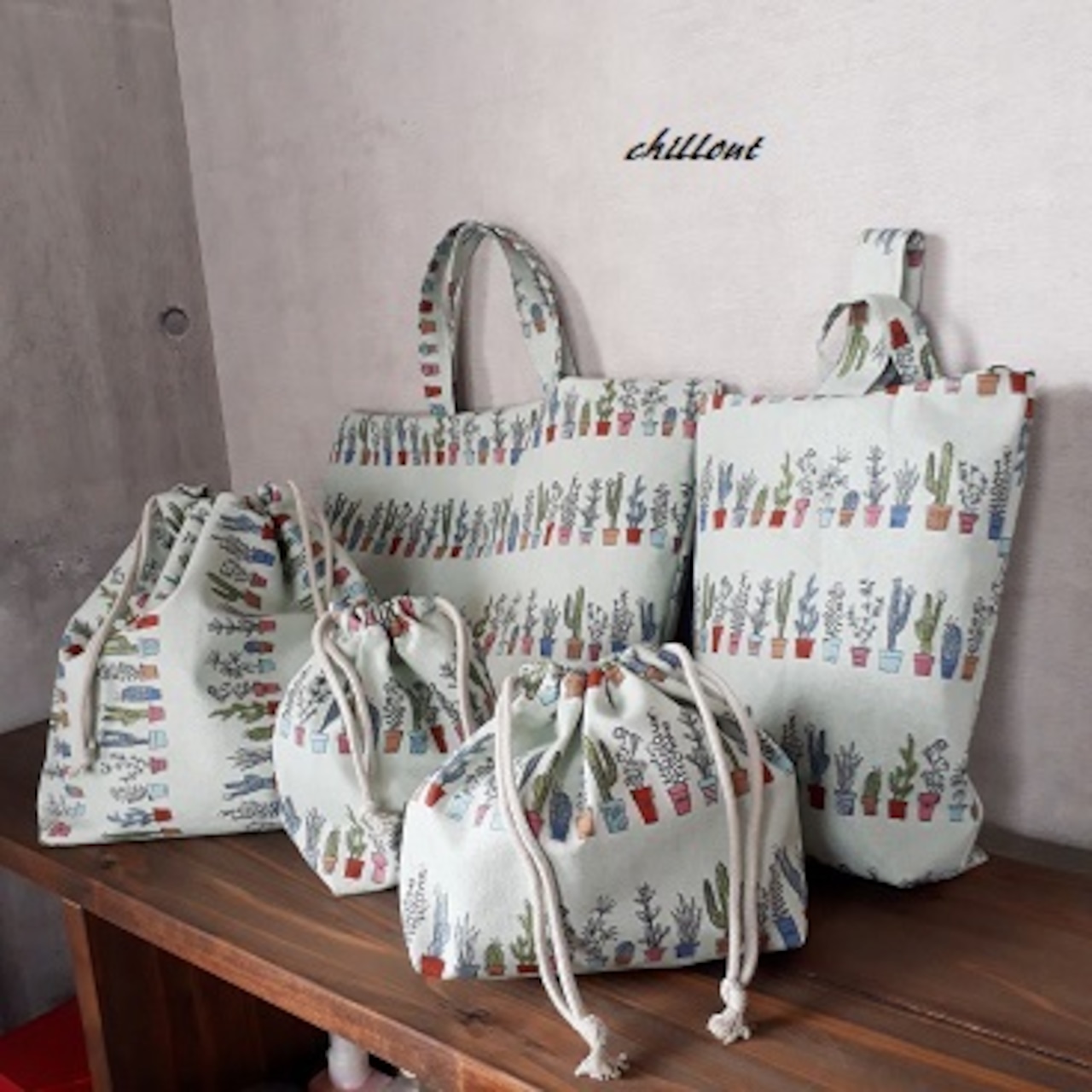 北欧デザインのおしゃれなサボテン柄の入園セットが出来上がりました。
