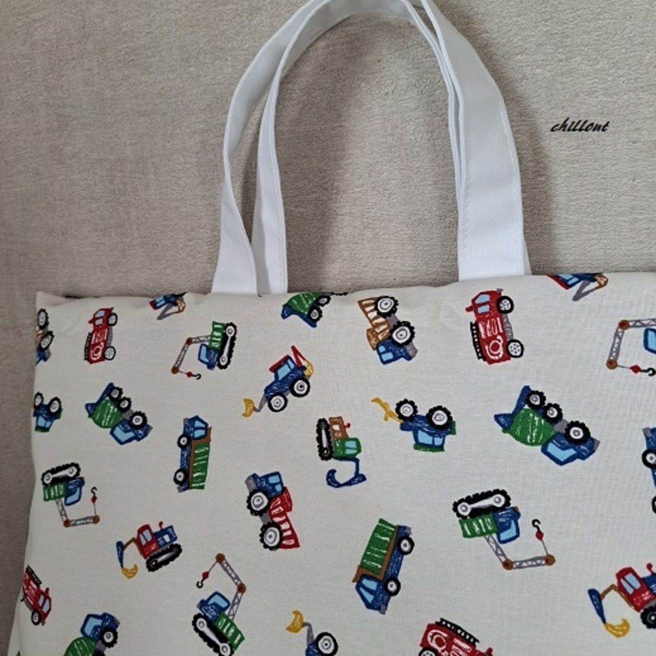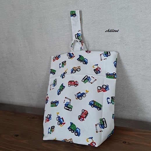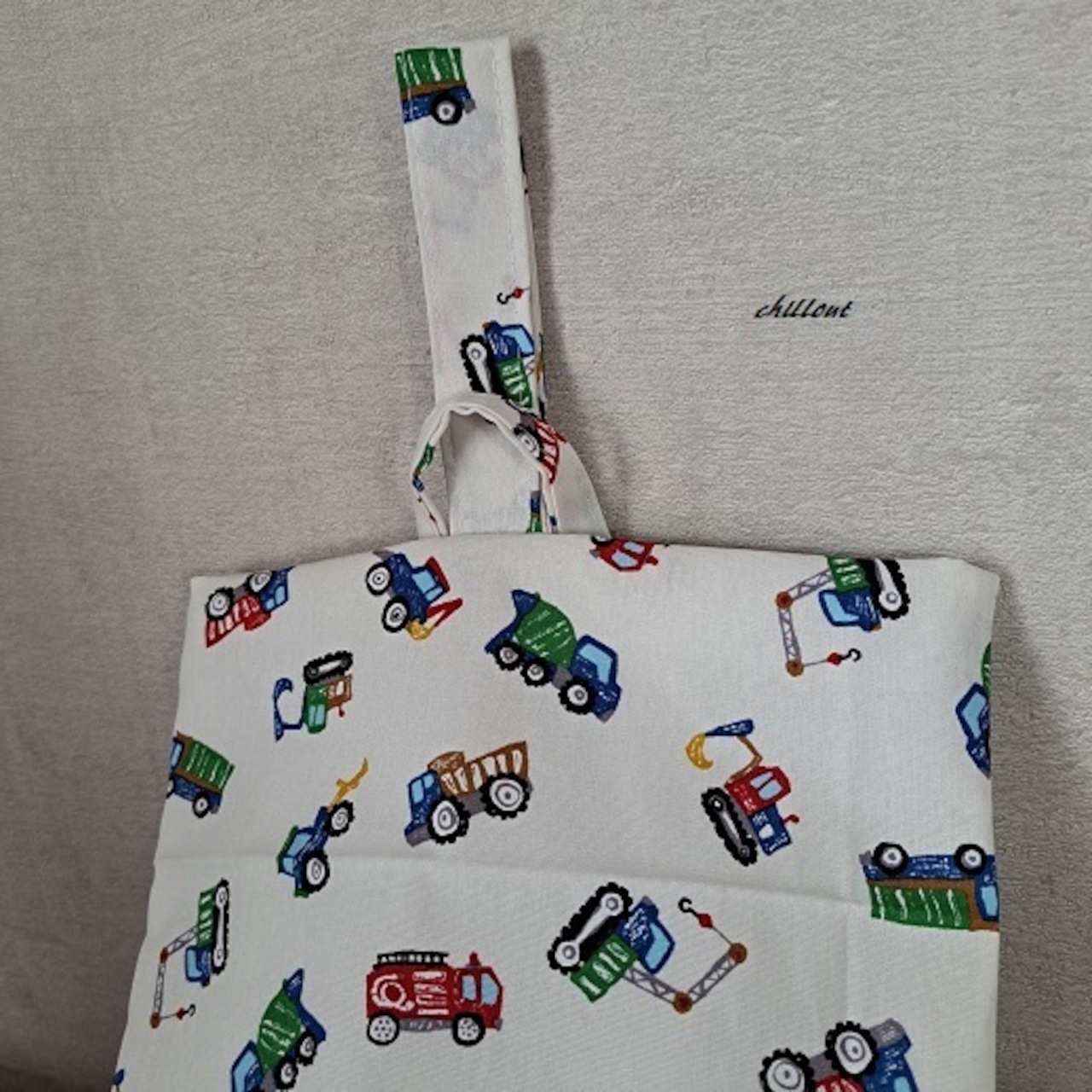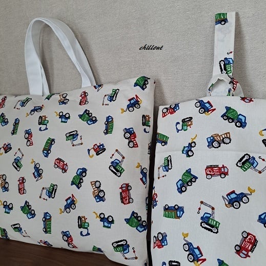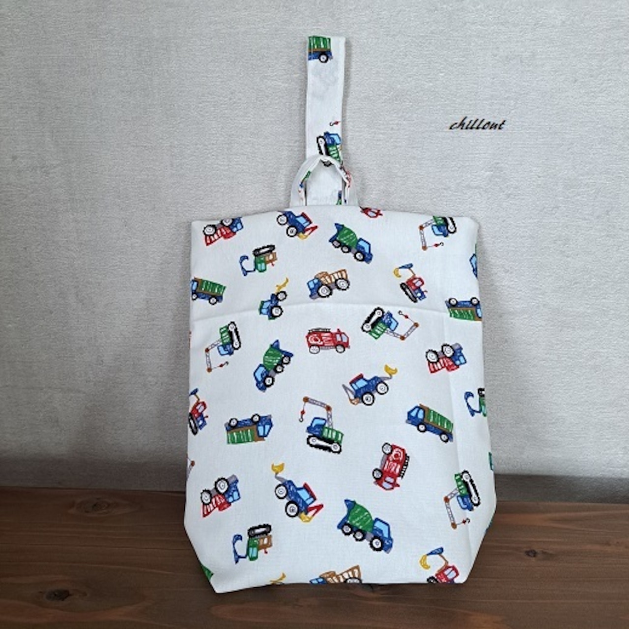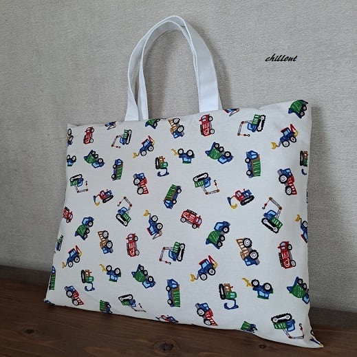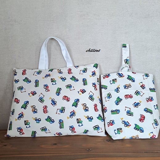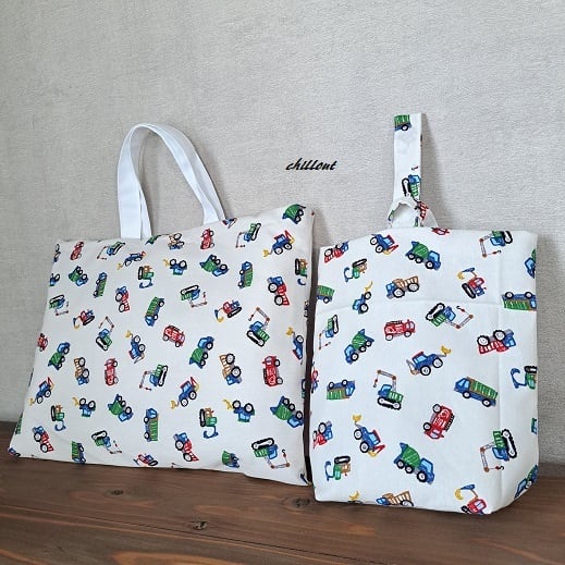 【入園・入学】働く車:入園バッグ2点セット:ホワイト【0839】