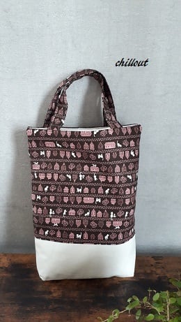 【入学・入園】入園バッグ5点セット:茶色の猫の切替セット【0014】