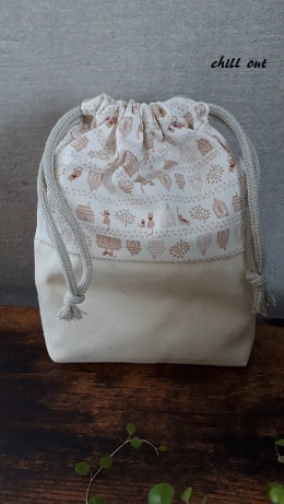 ⑤コップ巾着【サイズ】縦 約18㎝・横約13㎝・マチ 約4.5㎝