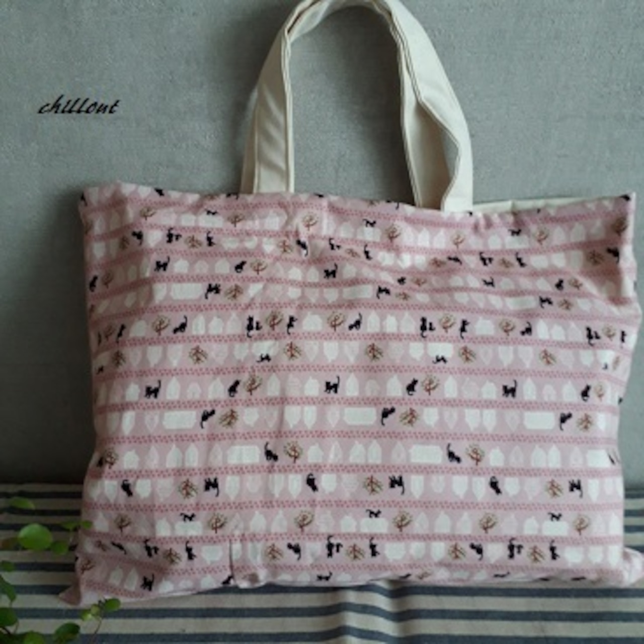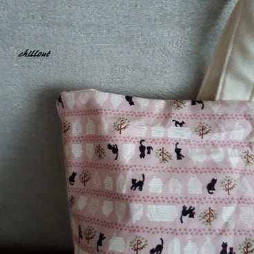 【入園・入学】入園バッグ6点セット:ピンクの猫柄ボーダーセット【0023】
