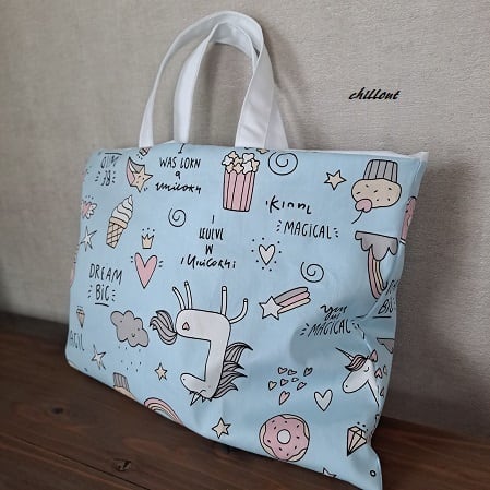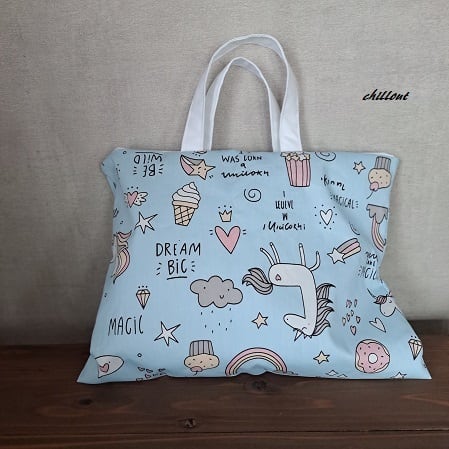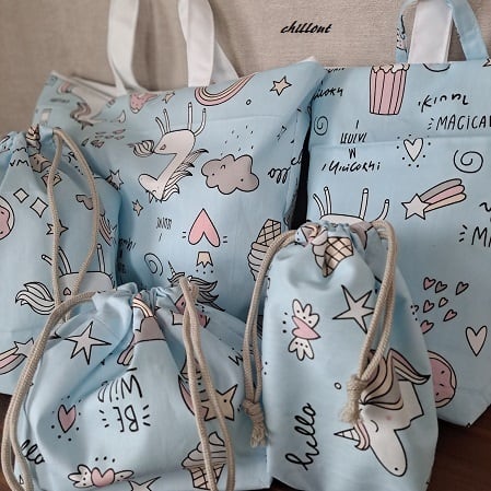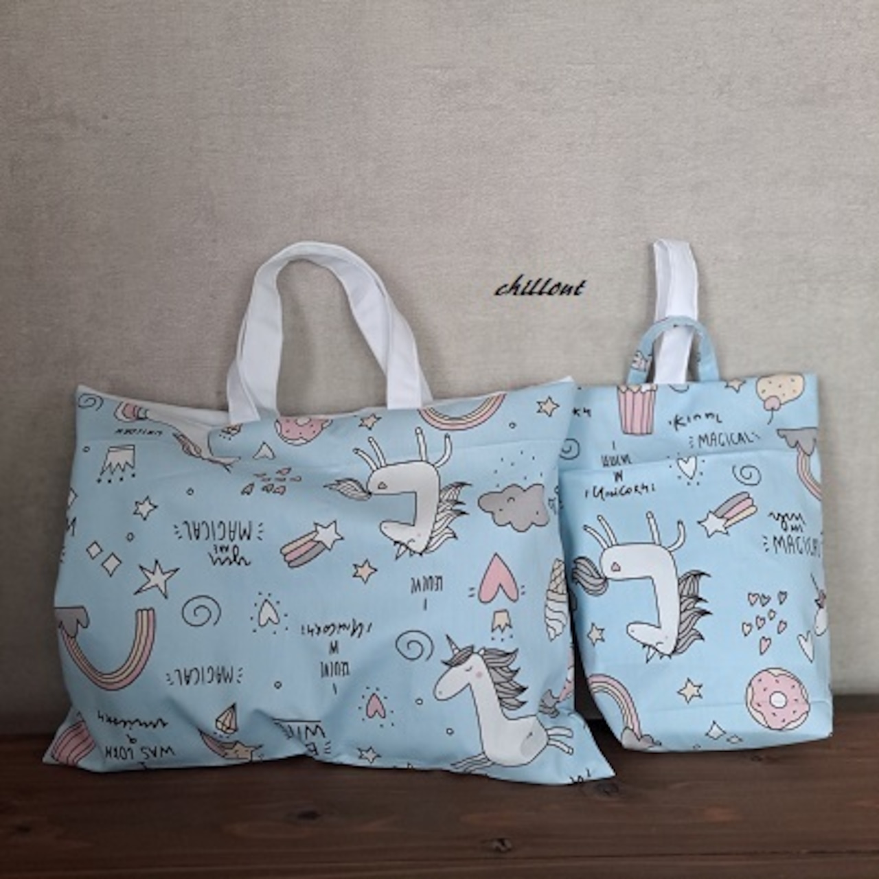 とてもかわいらしいユニコーンの入園バッグ5点セットが出来上がりました。