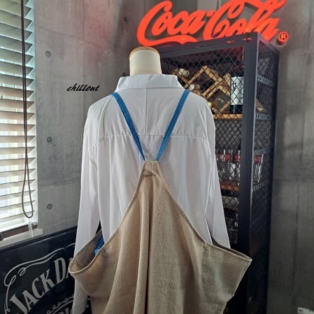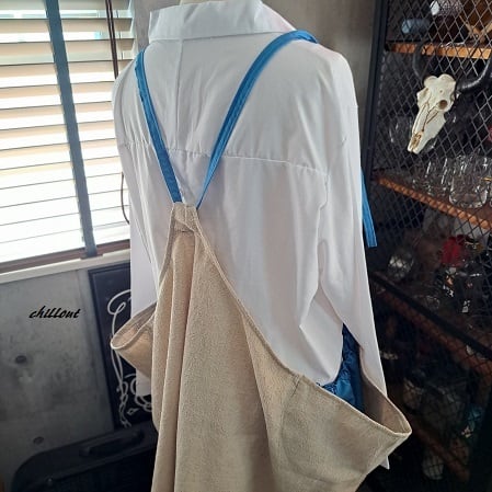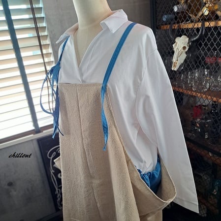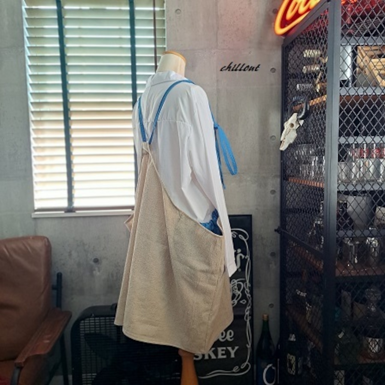 【背中がかわいい】エプロンドレス:リネン×セルリアンブルー【0931】