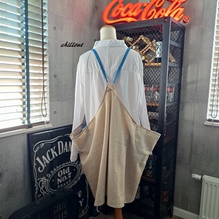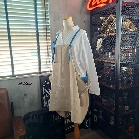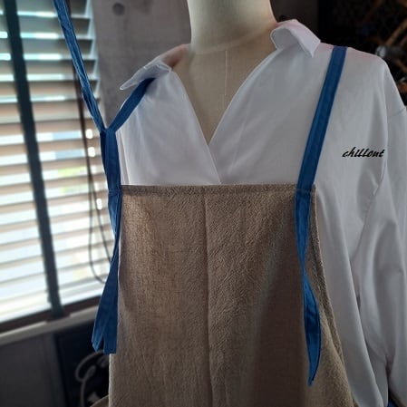 リネン×セルリアンブルーのエプロンドレスが出来上がりました。