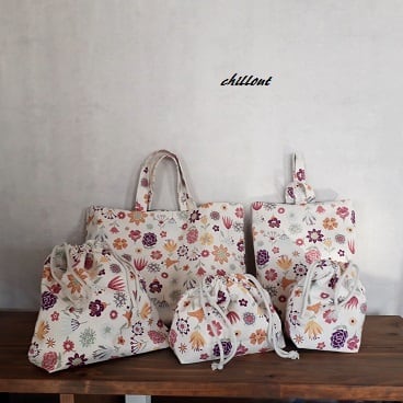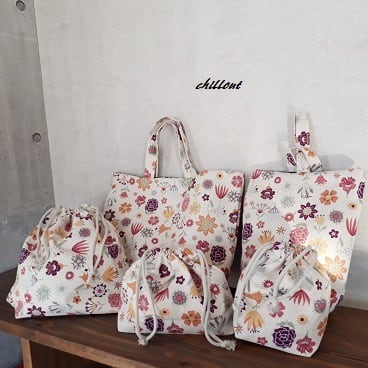 北欧デザインの花柄の入園バッグ5点セットが出来上がりました。