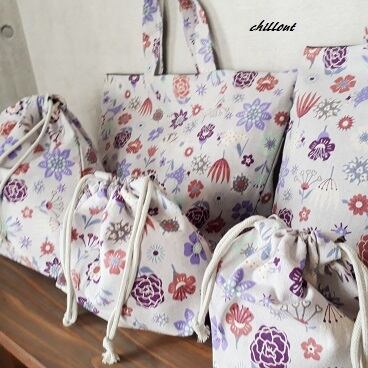 北欧リネンの花柄の入園5点セットが出来上がりました。