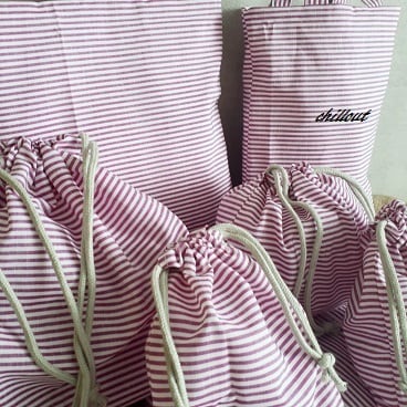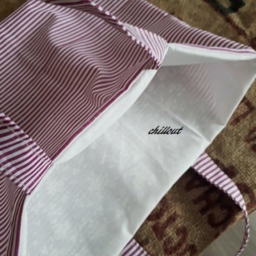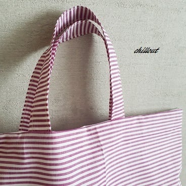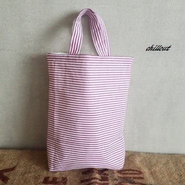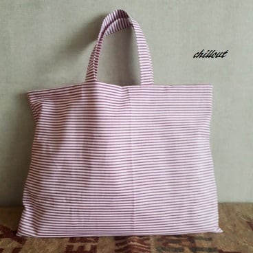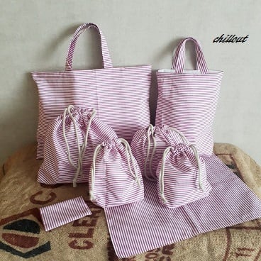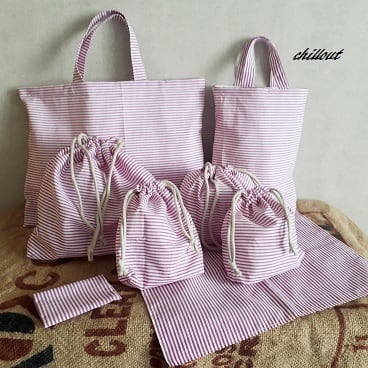 ピンクストライプのかっこいい入園バッグ8点セットが出来上がりました。