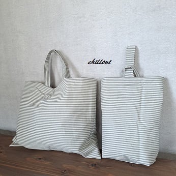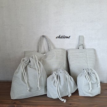 グレーストライプの入園バッグ5点セットが出来上がりました!