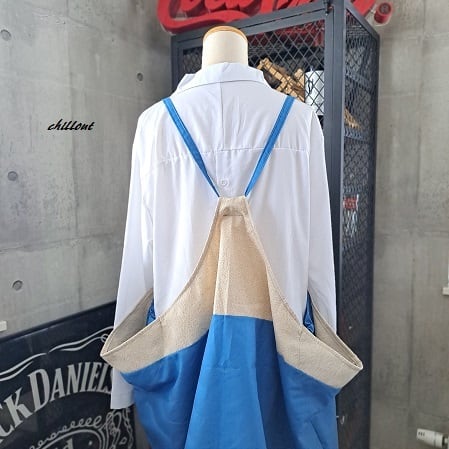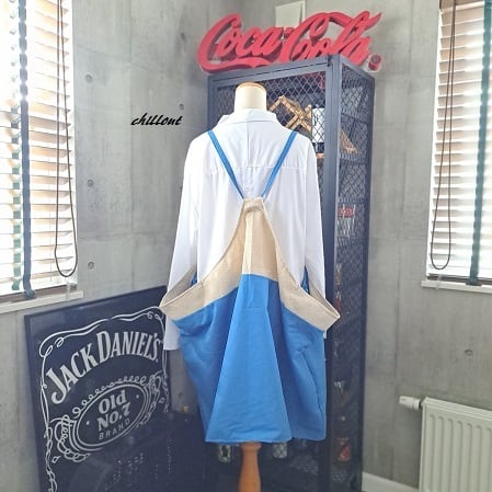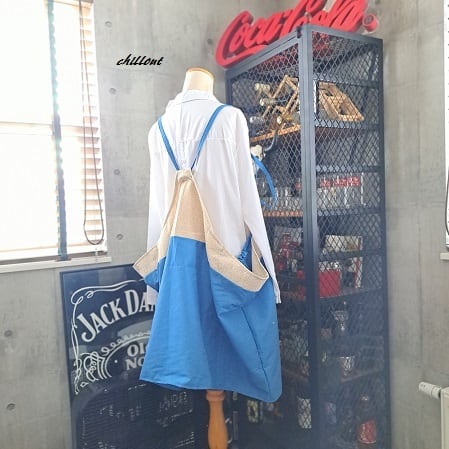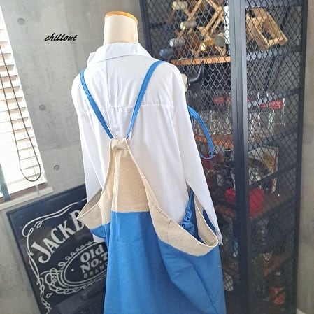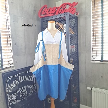 【背中がかわいい】エプロンドレス:リネン×ブルー【0997】