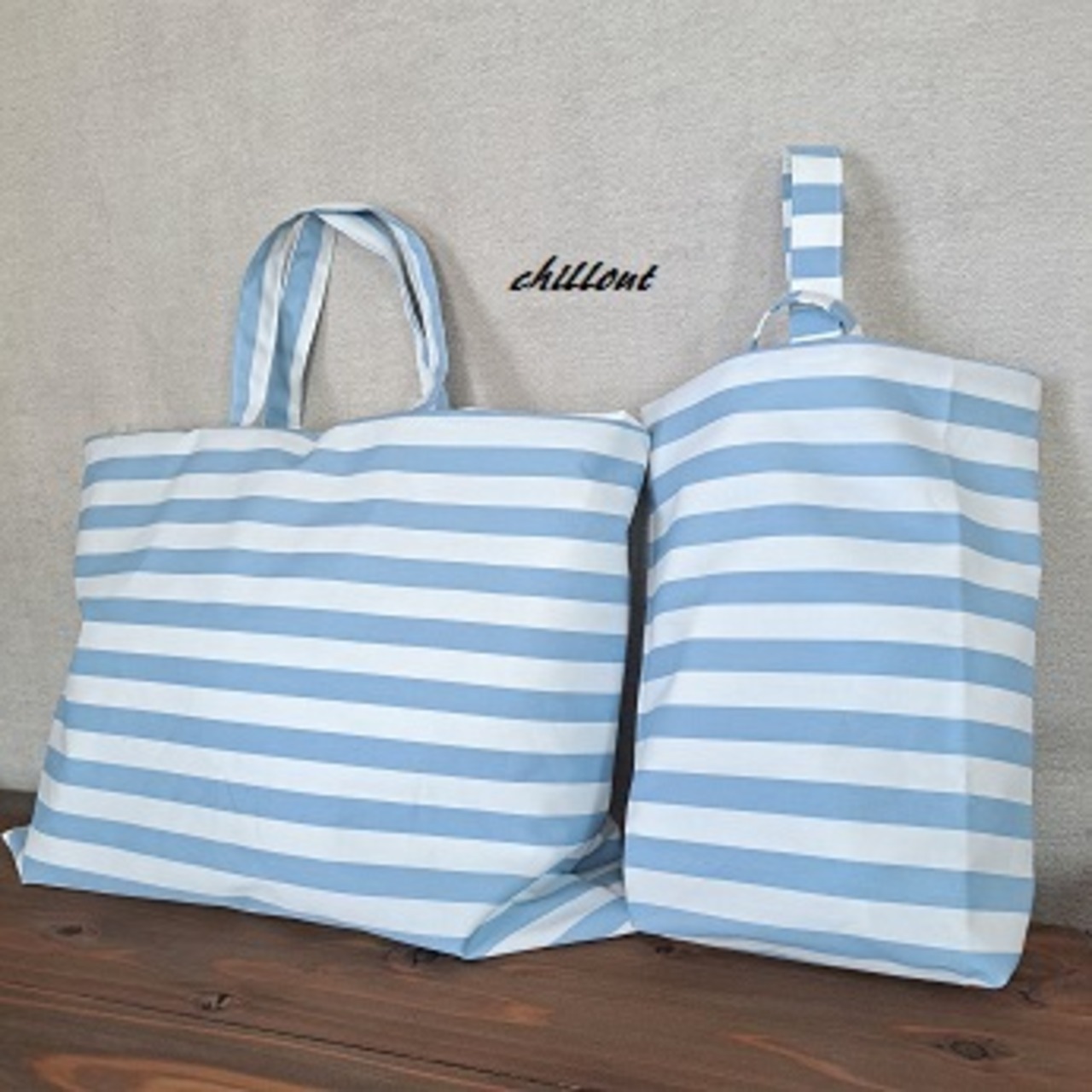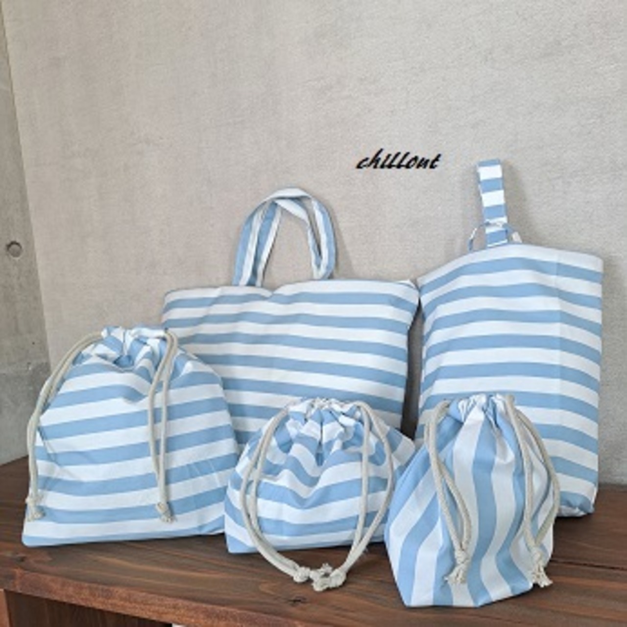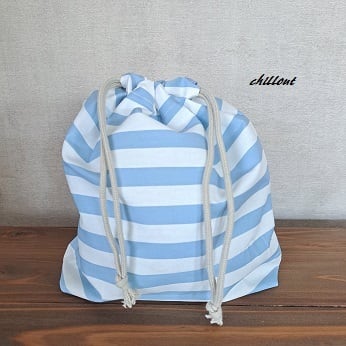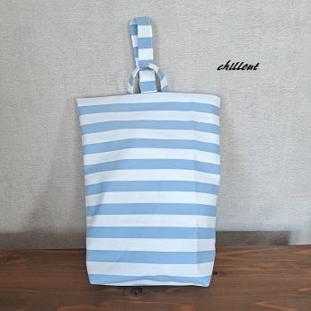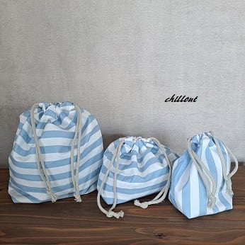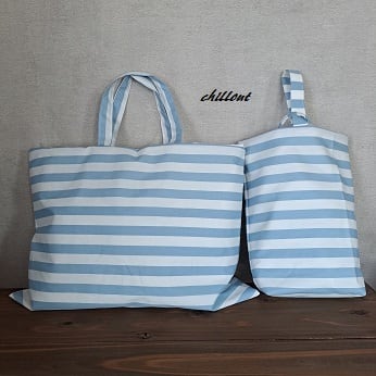 水色ストライプの入園バッグ5点セットが出来上がりました!