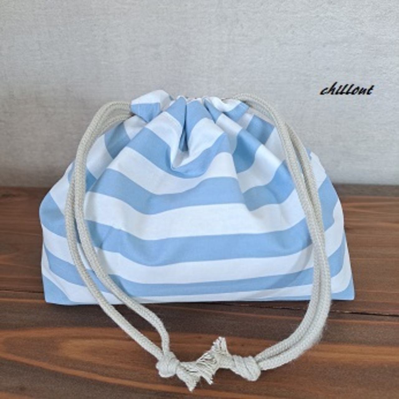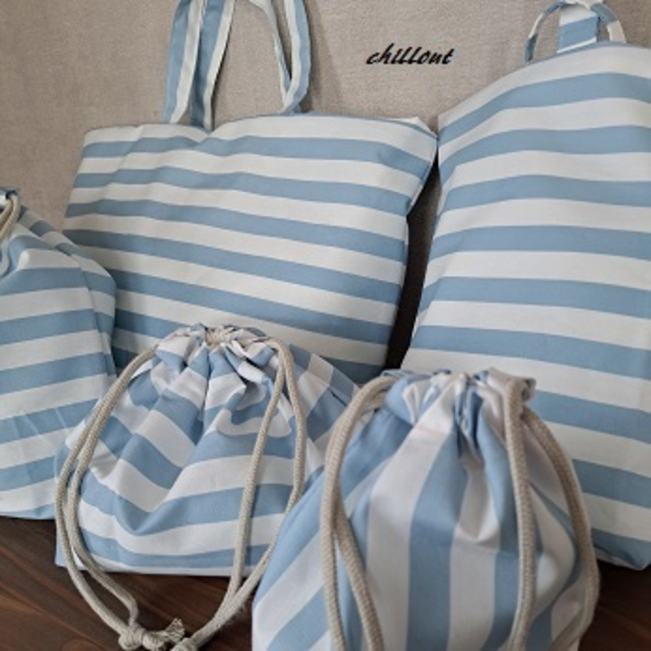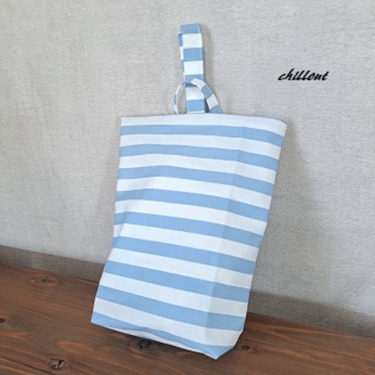 水色ストライプの入園バッグ5点セットが出来上がりました!