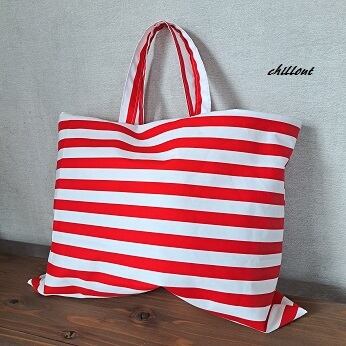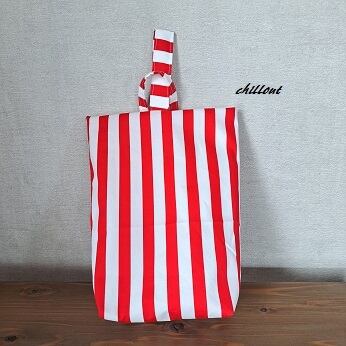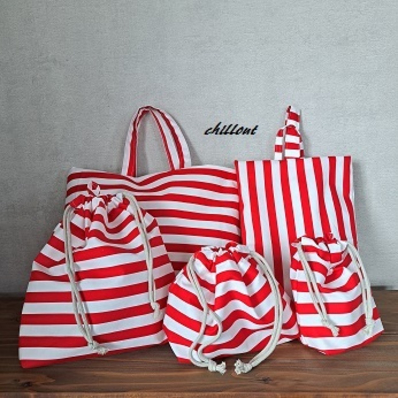 レッドストライプの入園バッグ5点セットが出来上がりました!