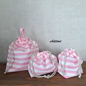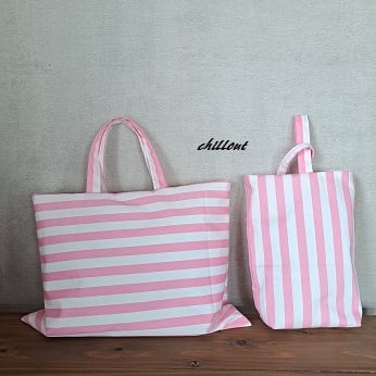 ピンクストライプの入園バッグ5点セットが出来上がりました!
