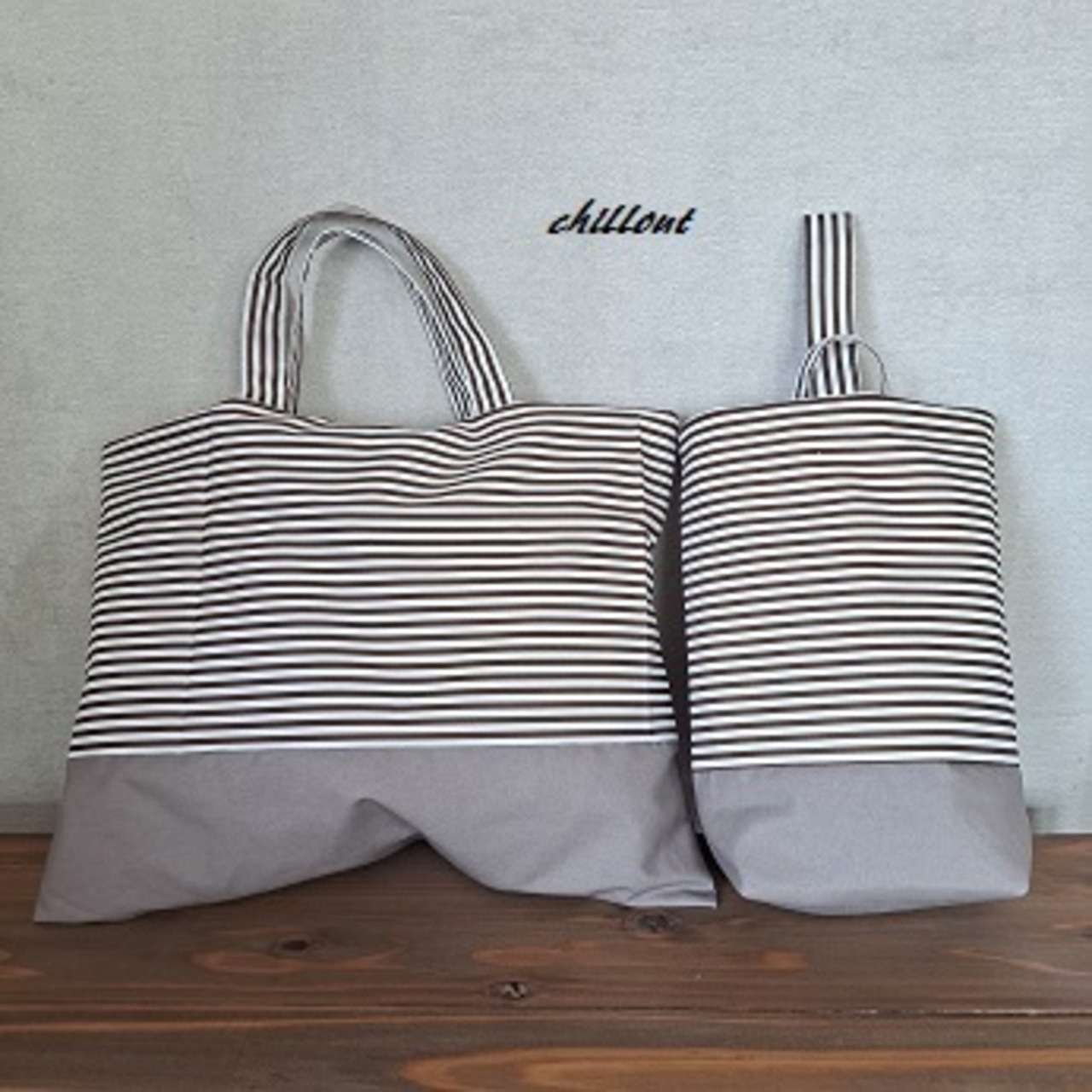 ブラウンストライプ×ブラウンの切替2点入園セットができあがりました。