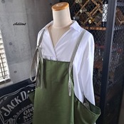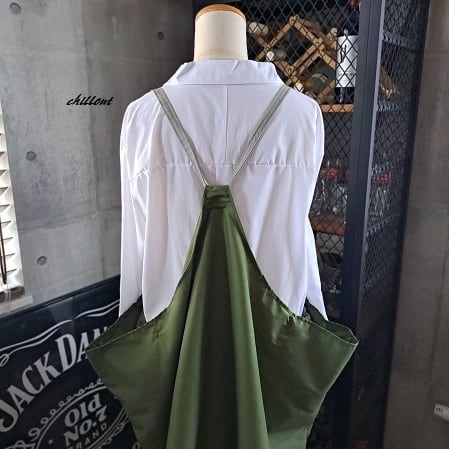 【背中がかわいい】エプロンドレス:オリーブ×ライムグレー【0894】