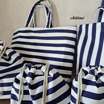 ネイビーストライプの入園バッグ5点セットが出来上がりました!