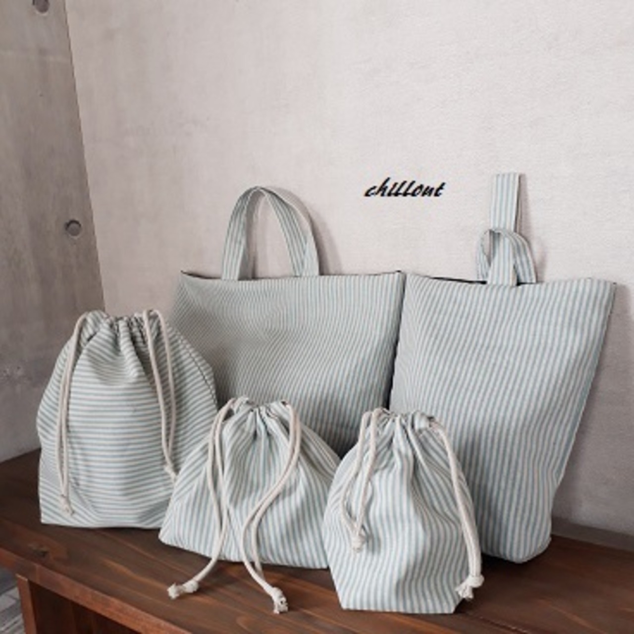 【入園・入学】入園バッグ5点セット:水色ストライプ【0491】