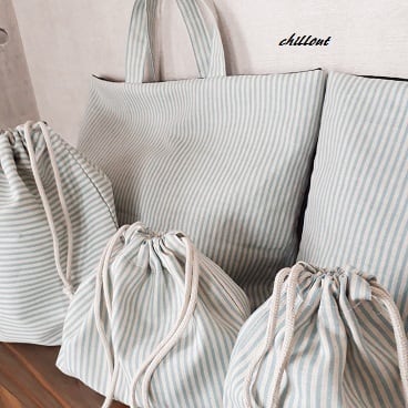 【入園・入学】入園バッグ5点セット:水色ストライプ【0492】