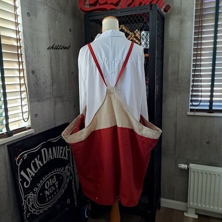 【背中がかわいい】エプロンドレス:リネン×レッド【0993】