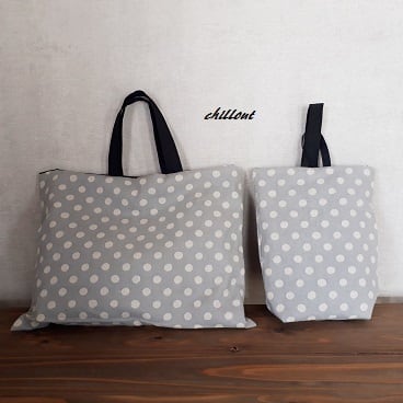 北欧デザインのドット柄入園2点セットが出来上がりました。