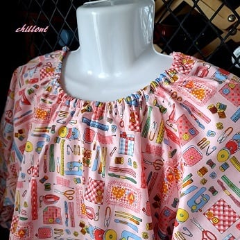 とってもかわいらしいピンクに裁縫道具がたくさん書かれています。