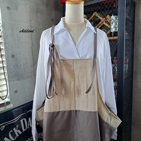 リネン×ブラウンのエプロンが出来上がりました。