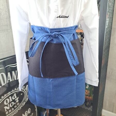ブルーデニム×ブラックのバリスタショートエプロンが出来上がりました。