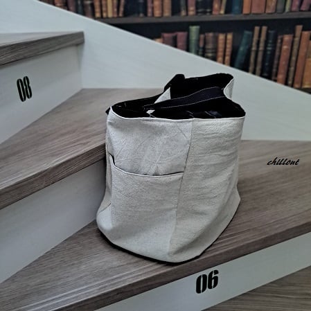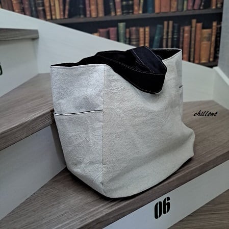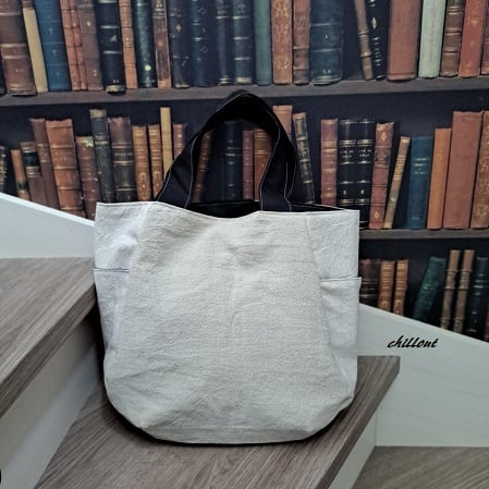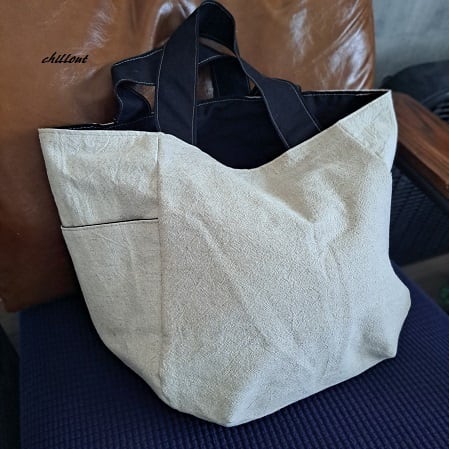 リネン×ブラックの大きなトートバッグが出来上がりました。