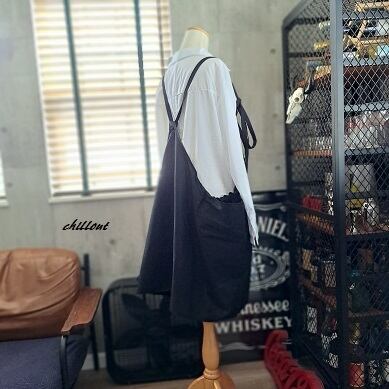 【背中がかわいい】エプロンドレス:デニム:ブラック【1057】