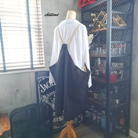 【背中がかわいい】マキシ:エプロンドレス:ブラック×リネン【1063】