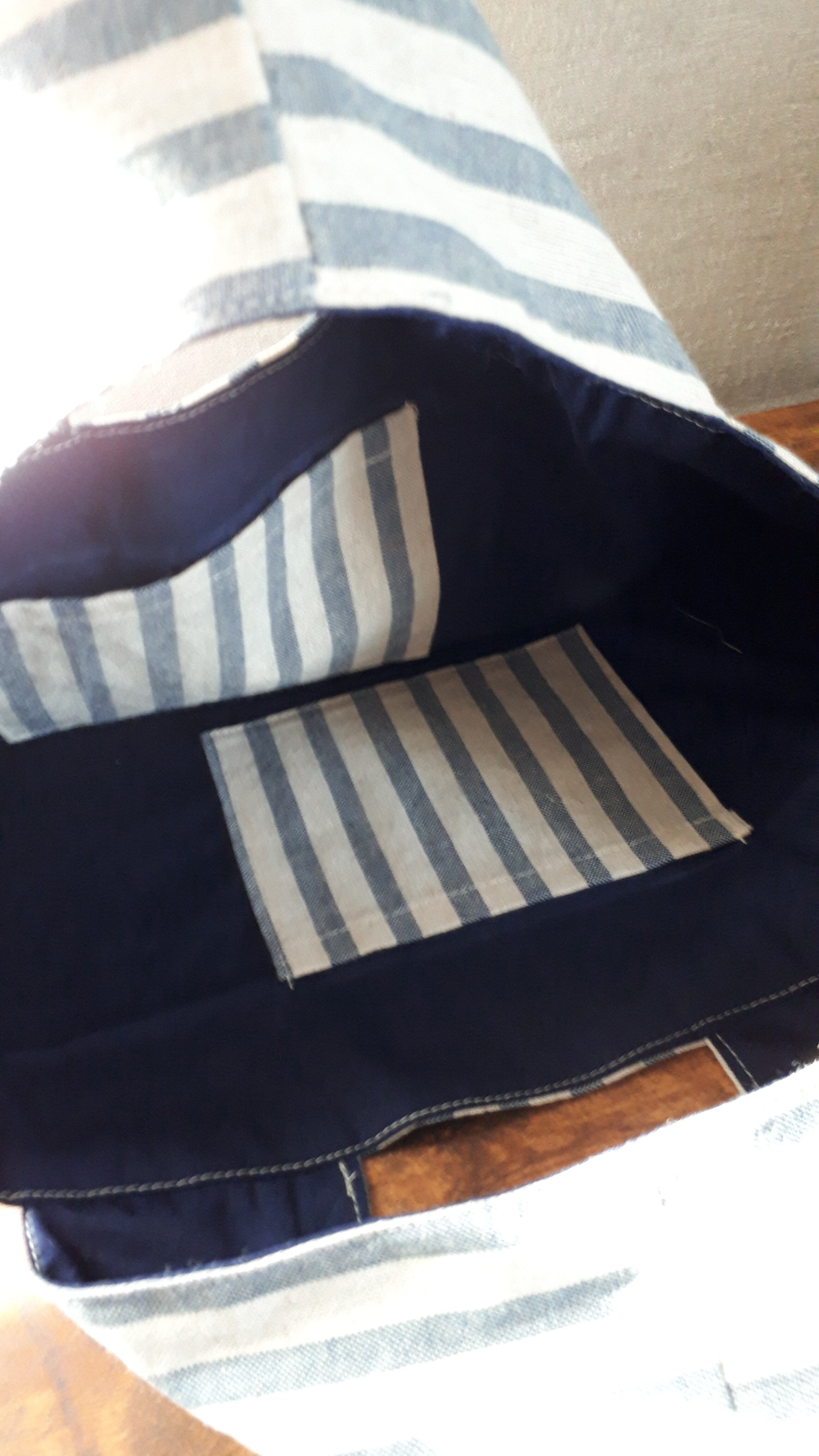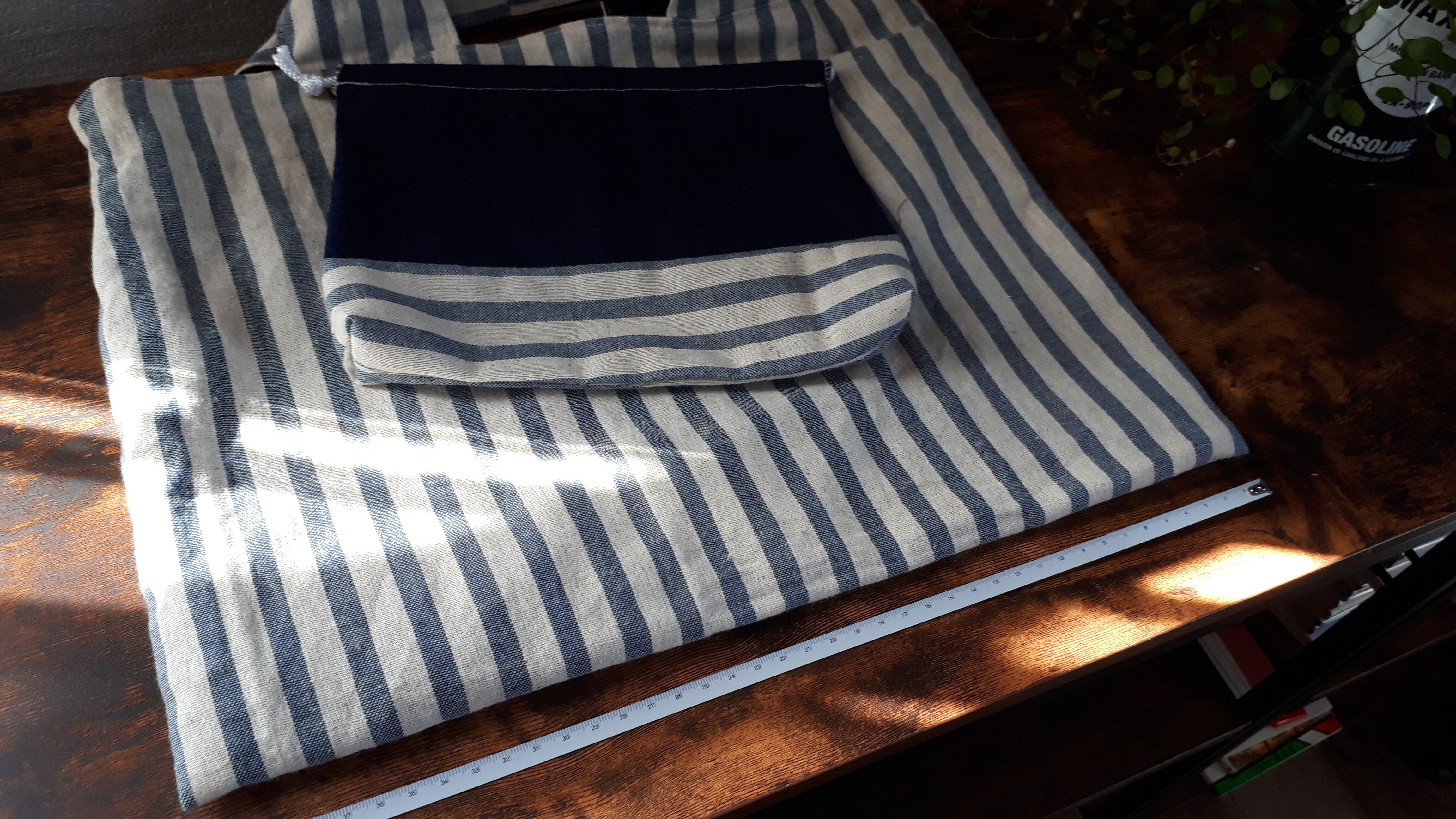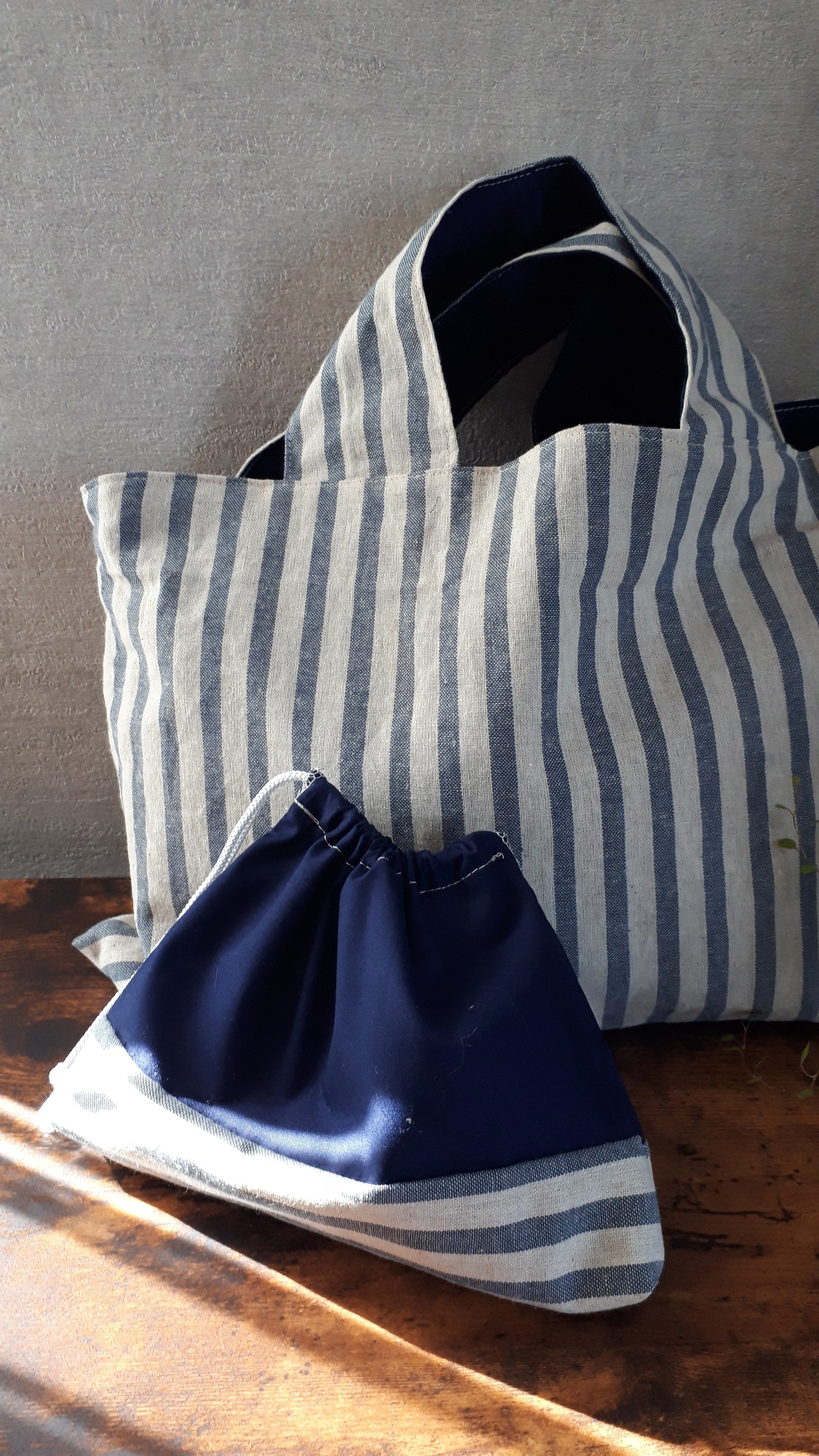 【outlet】ボーダーリネンのバッグ(巾着付き)【0003】