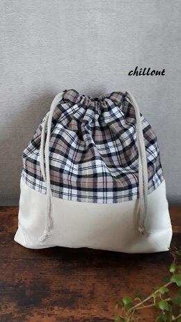 黒×茶のチェックと生成の切り替え入園バッグ5点セットです。