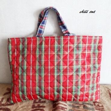 少しテイストが違う赤ベースのチェックで入園バッグ5点セットです。
