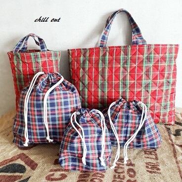 少しテイストが違う赤ベースのチェックで入園バッグ5点セットです。