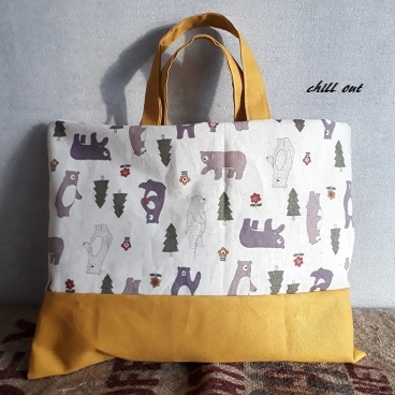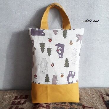 入園バッグ8点セット:北欧リネンの熊さん×イエローのセット【0037】