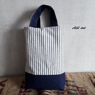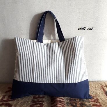 ブルーのボーダーと濃紺のかっこいい入園バッグセットができました!