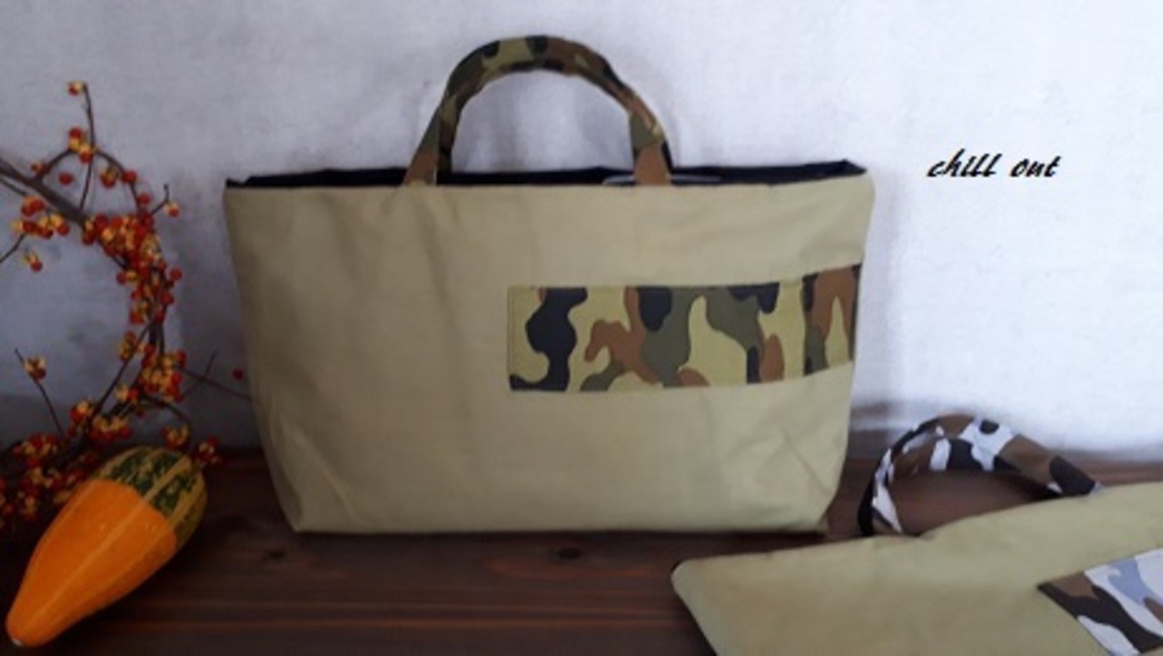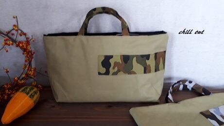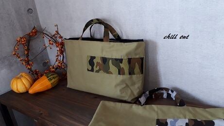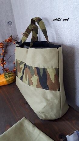 ミリタリーテイストのお弁当バッグが出来上がりました!