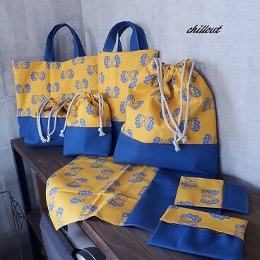 蝶々柄 ブルー×イエローのセットが出来上がりました!